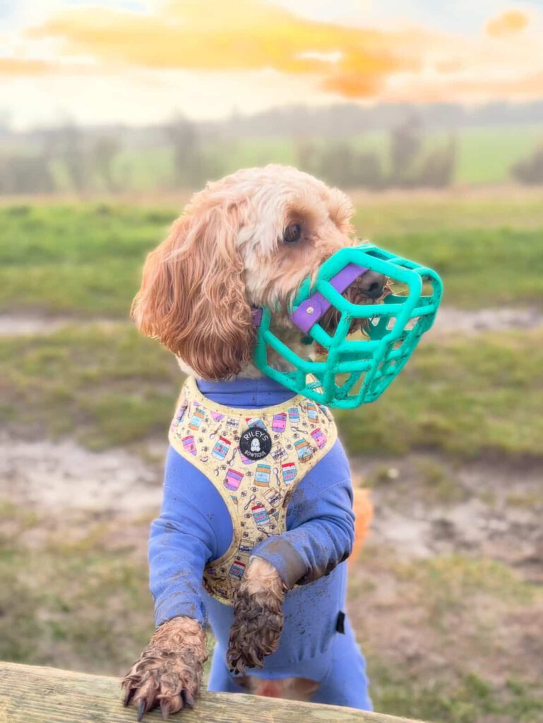 Unfortunately this issue got so bad it reached a point where poor Riley’s stomach completely shut down and he had to spend 3 nights in hospital on an IV, and being tube fed until he was well enough to come home. At this point Riley’s owner had no other choice than to find him a comfortably fitting muzzle to stop anything like this happening again in the future, as it simply wasn’t worth the risk. Riley is now thriving, he is healthier and happier than ever and now maintaining an ideal weight. It has also given his owners peace of mind when out on walks that he isn’t going to seek out any free “snacks” along the way.